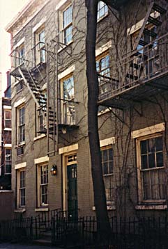 Patchin Place, near Jefferson Market Court House, consists "of a small number of three-storey terraced houses, set about with ailanthus trees, and lining both sides of a blind-alleyway opening on to West 10th Street" (Richard Graves, The Brothers Powys), built in 1848 by Aaron D. Patchin. Ezra Pound had once lived there, and Frances Gregg had come to visit him with Hilda Doolittle, before she knew John Cowper. | ||