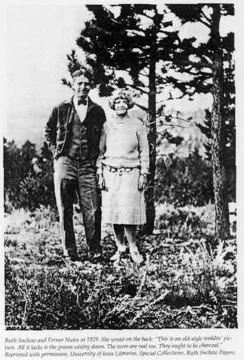 Ruth Suckow (1892-1960)Ruth Suckow was an American writer who wrote about ordinary farmers, small-town Iowans, and independent women. She was born in Hawarden, Iowa, and lived most of her life in that State, finally making Cedar Falls her home. In March 1929 she married Ferner Nuhn (1908-1989), a young literary critic, also from Cedar Falls. They moved to California in 1952 because of failing health. The 1920s were the most successful years of Ruth Suckow's career, but she wrote all her life. It was not her only activity. She was a Quaker, like her husband, and devoted much of her time and energy to the conscientious objectors during World War II. She was the author of works which centre on family and church affairs: Country People (1924), Iowa Interiors (1926), The Kramer Girls (1930), The Folks (1934), Some Others and Myself (1952). Ruth was much admired by the Norvegian writer Sigrid Undset, who wished to have her works translated into Norvegian, and by Robert Frost, with whom Ruth and Ferner had a friendly relationship. They were also both great friends of Phyllis Playter and John Cowper. |