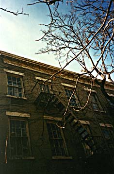 Patchin Place, near Jefferson Market Court House, consists "of a small number of three-storey terraced houses, set about with ailanthus trees, and lining both sides of a blind-alleyway opening on to West 10th Street" (Richard Graves, The Brothers Powys), built in 1848 by Aaron D. Patchin. Ezra Pound had once lived there, and Frances Gregg had come to visit him with Hilda Doolittle, before she knew John Cowper. | ||