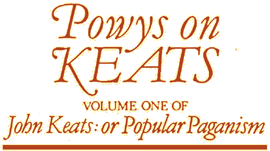 'This book of mine is an interpretation of what Keats felt when he was left to himself,' wrote Powys, 'when he was thrown back upon himself, and it is just then that we find him most pagan and most popular.'